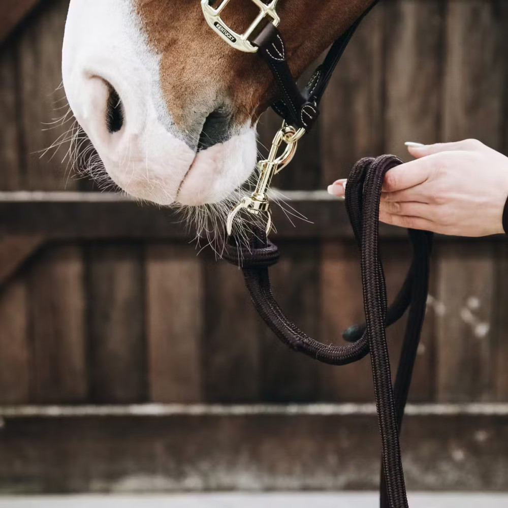 М’який чомбур Lead Rope Kentucky виготовлений із щільно сплетеного нейлону та ідеально підходить для використання як розв’язка. Він чудово підходить для застосування в стайні, під час транспортування або в будь-якій ситуації, коли необхідно надійно зафіксувати коня. Довжина чомбура становить 2,8 метри, що забезпечує зручність і універсальність у використанні. Практичний карабін із защіпкою легко відкривається та закривається, а м’яка текстура матеріалу гарантує комфортний і надійний хват рукою. Міцний нейлон забезпечує довговічність і стійкість до щоденних навантажень, роблячи цей чомбур практичним і надійним аксесуаром для щоденного використання. Довжина чомбура: 2,8 метри.
