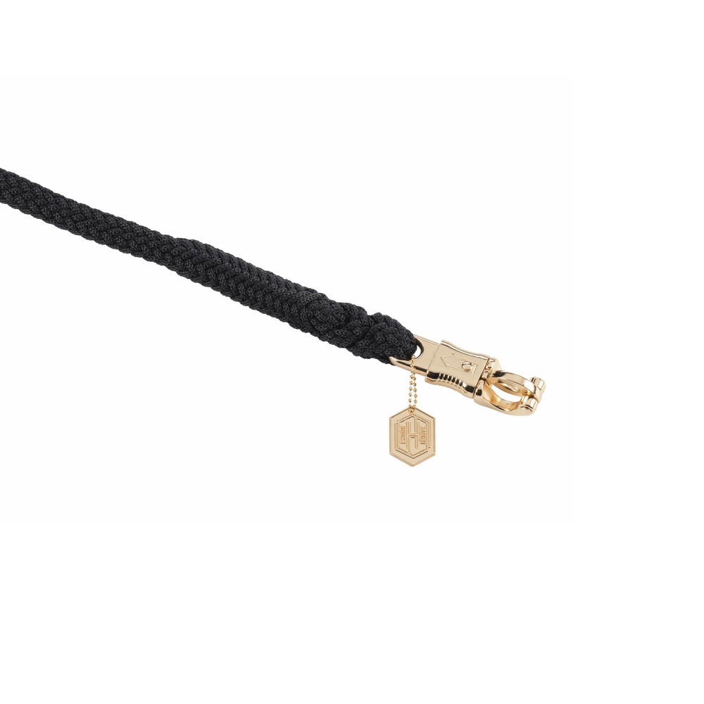 Чомбур із м'якої плетеної поліпропіленової мотузки довжиною 2 метри з безпечним карабіном «антипаніка» золотого кольору. Чомбур має табличку для запису імені коня і прикрашений логотипом Eskadron. Матеріал: 100% поліпропілен. Довжина 2 метри.