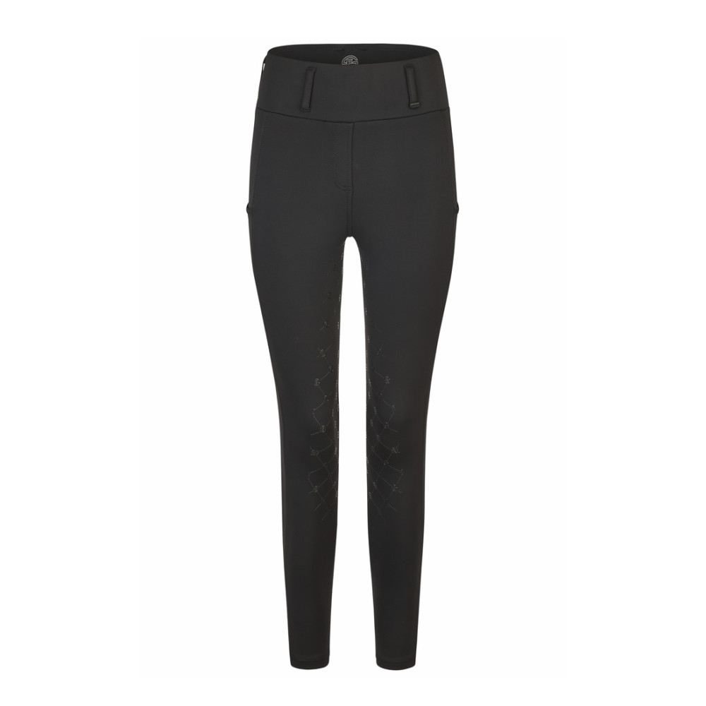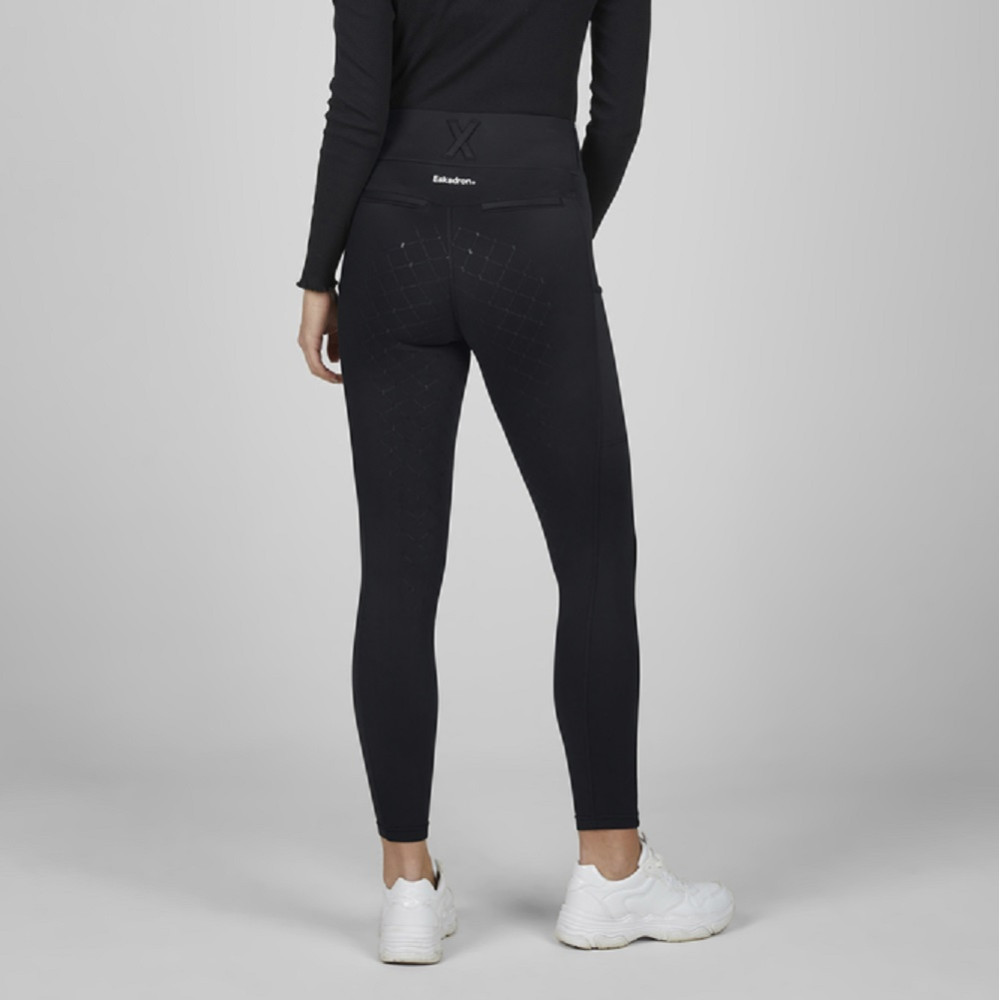 Лосини для верхової їзди виготовлені з нового еластичного матеріалу з 4-стороннім розтягненням, спеціально розробленого для літнього сезону.Він забезпечує легкість, комфорт і свободу рухів навіть у спекотну погоду.Модель оснащена декоративними швами з імітацією блискавки та практичними кишенями для мобільного телефону з обох боків.Широкий формуючий пояс із шльовками для ременя прикрашений металевою табличкою Eskadron.Фірмові принти Eskadron нанесені з обох боків, а легка та зносостійка повна силіконова лея забезпечує надійну фіксацію в сідлі та комфорт під час їзди.Матеріал: 77% нейлон, 23% еластан.