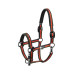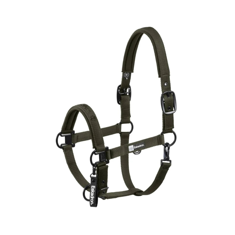 Недоуздок виготовлений із міцного якісного матеріалу та доповнений м’якою підкладкою із софтшелу в ділянці носа й потилиці для максимального комфорту коня.Оснащений пряжками з обох боків і регулюється під підборіддям, що забезпечує зручну посадку.Фурнітура виконана з чорного металу.На налобному ремені розташований напис Eskadron, а зліва — фірмовий ярличок.У комплект входить оригінальний брелок Eskadron.Стильний і практичний аксесуар для повсякденного використання.Матеріал: 100% поліпропілен.