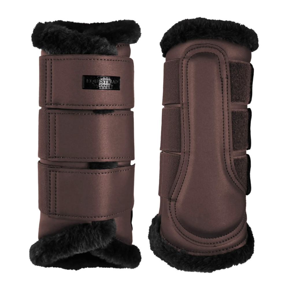 Високоякісні ногавки з універсальною посадкою, виконані в красивому коричневому кольорі із чорними деталями.Виготовлений із синтетичної штучної шкіри з матовим покриттям.М'яке плюшеве хутро на внутрішній стороні, що прилягає до ніг коня.Еластичні застібки-липучки зі стильним логотипом Equestrian Stockholm. Колір хутра: чорний.Деталі: логотип Equestrian Stockholm із хрому.Матеріал: зовні 100% штучна шкіра. Всередині штучне хутро, 100 % поліестер.Прання: Прати за 30°. Перед машинним пранням прикріпіть застібку-липучку назад. Не сушити в пральній машині.