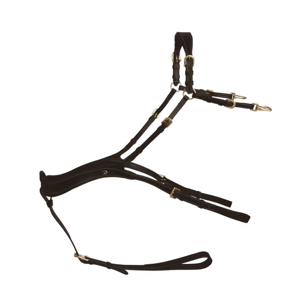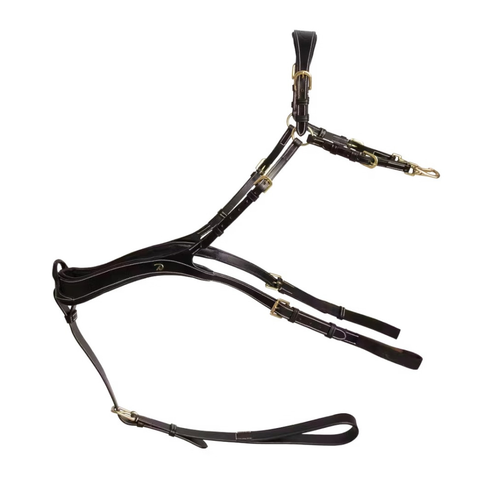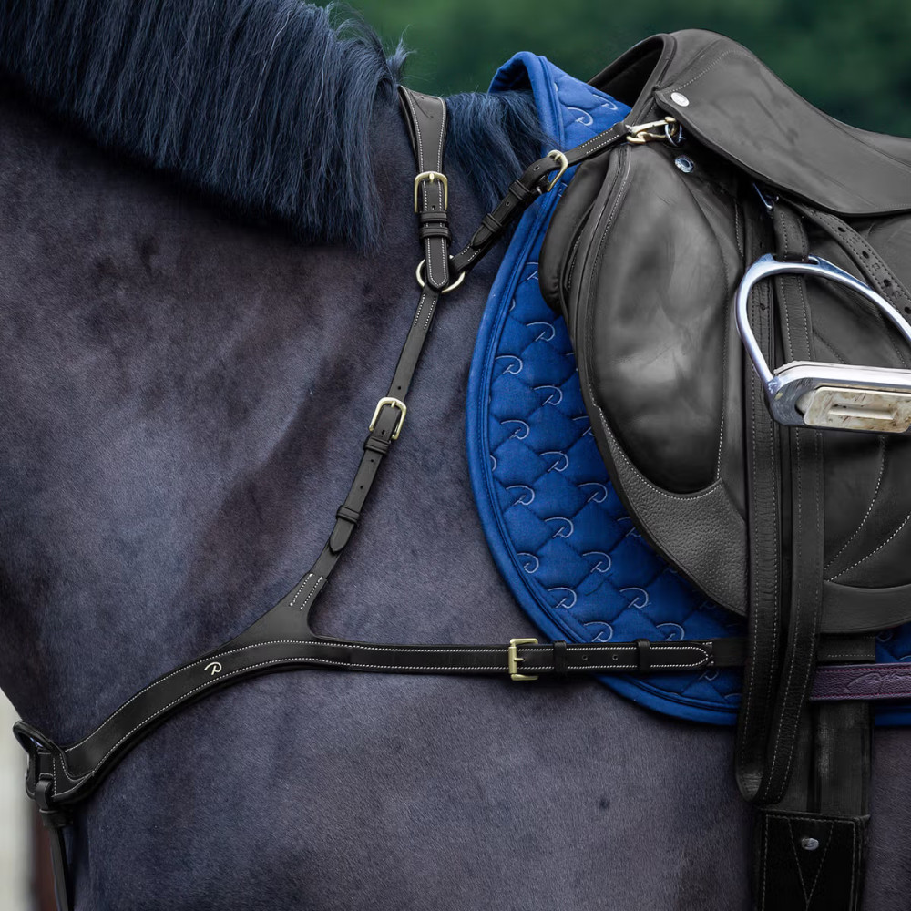 Регульоване анатомічне підперсня з 5 точками кріплення забезпечує надійну та точну фіксацію.Анатомічно вигнута форма дозволяє плечам коня рухатися повністю вільно, не обмежуючи руху.Еластичні вставки завдовжки 6 см підвищують комфорт та знижують тиск.Зручні карабіни забезпечують швидке та надійне кріплення підперся до сідла.