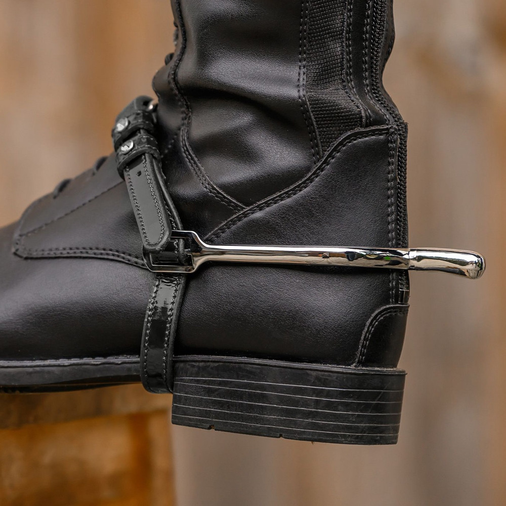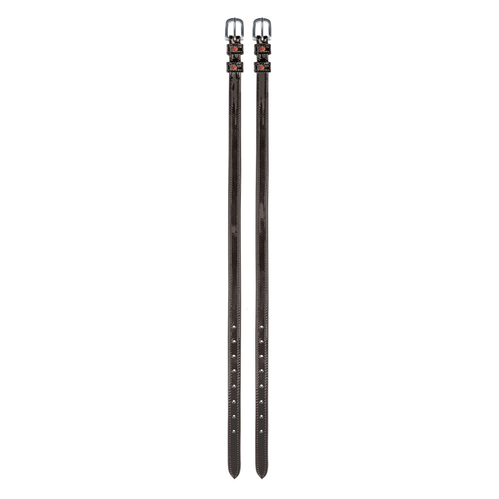 Ремінець для шпор із лакованої шкіри з кристалом на петлях.У комплекті пара.Довжина: 47 см.Матеріал: 100% натуральна шкіра.