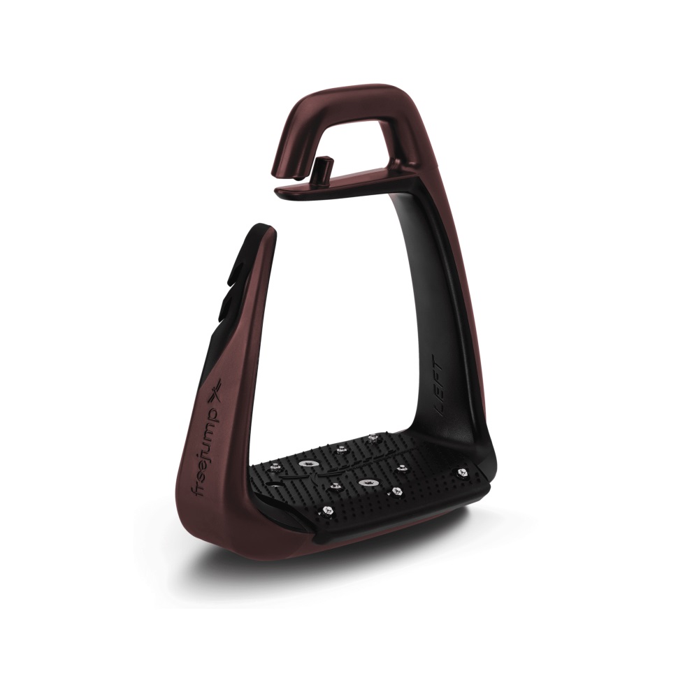 Ці стремена є вибором вершників світового рівня. Вони поєднують у собі комфорт, безпеку та простоту. Їхні запатентовані гнучкі бічні частини зроблені з Еластоллана і легко допомагають звільнити ногу у разі падіння. Поліпшена стійкість до ударів. Завдяки новій геометрії гілок, знижується навантаження на кожне стремено на дві третини і зменшується тиск на суглоби вершника та спину коня. У 3 рази більше амортизації, ніж у традиційного стремена. Центр тяжіння встановлений у напрямку спереду. Це призводить до зворотного руху протектора, що спонукає вершника утримувати п'яти внизу. Широкий карбоновий протектор та похилі шпильки створюють широку опорну поверхню, що зменшує тиск стопи. Завдяки новій технології виготовлення, сталева гілка має дуже високу механічну міцність. Технологія одностулкових рішень дозволяє використовувати гнучку зовнішню гілку, яка розроблена так, що при тиску ступні при падінні вона відкривається, вивільняючи ногу. Характеристики: Відкритий отвір для путліщ. 9 шпильок для зчеплення з підошвою (зношені шпильки можуть бути замінені). Пружинна сталева основа. Гнучка зовнішня гілка. Екстра - широкий карбоновий протектор.
