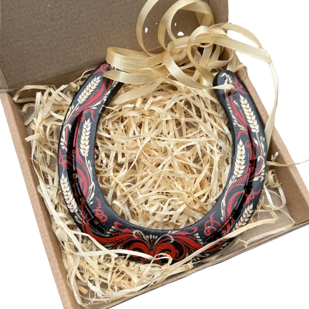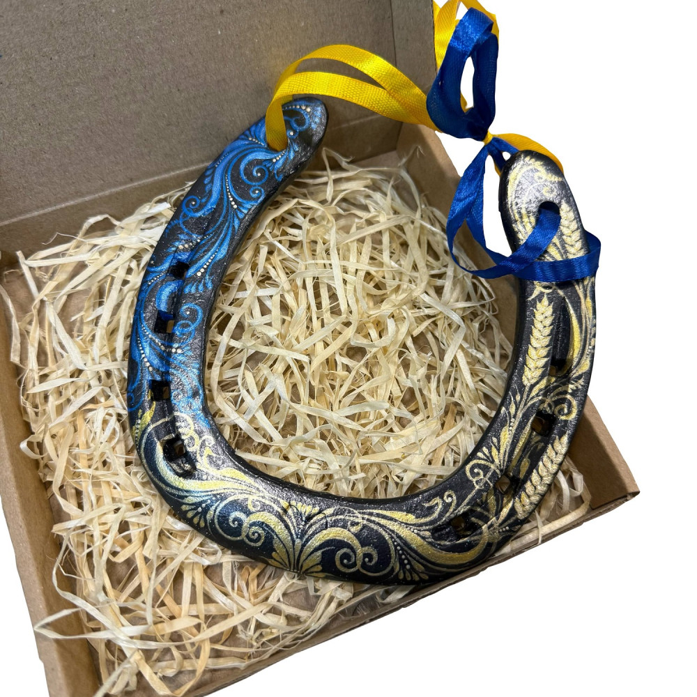 Декоративна підкова ручної роботи — стильний оберіг для дому або оригінальний подарунок.Підкова традиційно вважається символом удачі, захисту та достатку.Виріб виконаний з художнім розписом і покритий захисним лаком, що зберігає яскравість кольорів і акуратний зовнішній вигляд.Підходить для прикраси інтер'єру, офісу або як пам'ятний сувенір.
