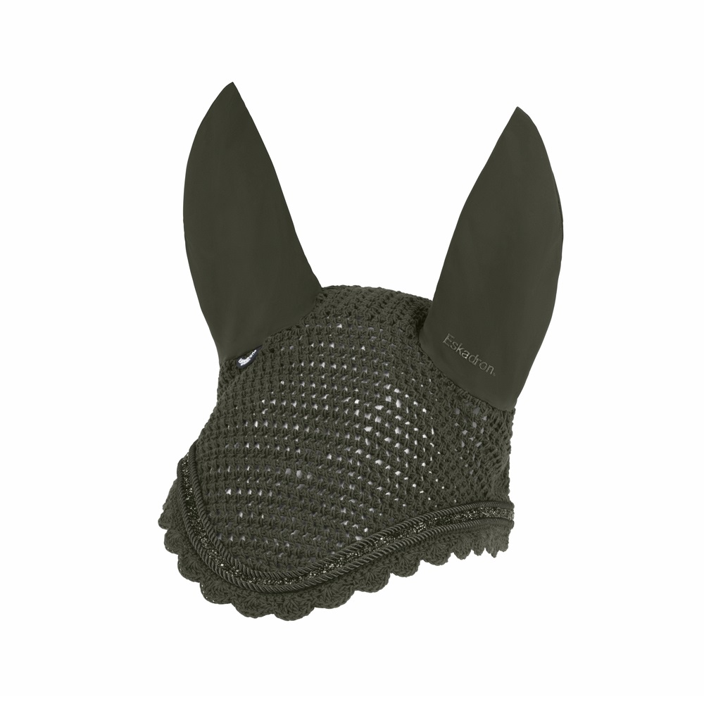 Вушка для коня зв’язані з бавовняної пряжі гачком і доповнені матеріалом SoftShell, що забезпечує комфорт і захист від комах.Декоровані комбінацією кристалів, яка надає виробу елегантного й вишуканого вигляду.На лівому вушку розташований напис Eskadron, а також невеликий прапорець-лейбл.Ідеальний аксесуар для захисту та стилю під час тренувань і змагань.Матеріал: 100% бавовна.