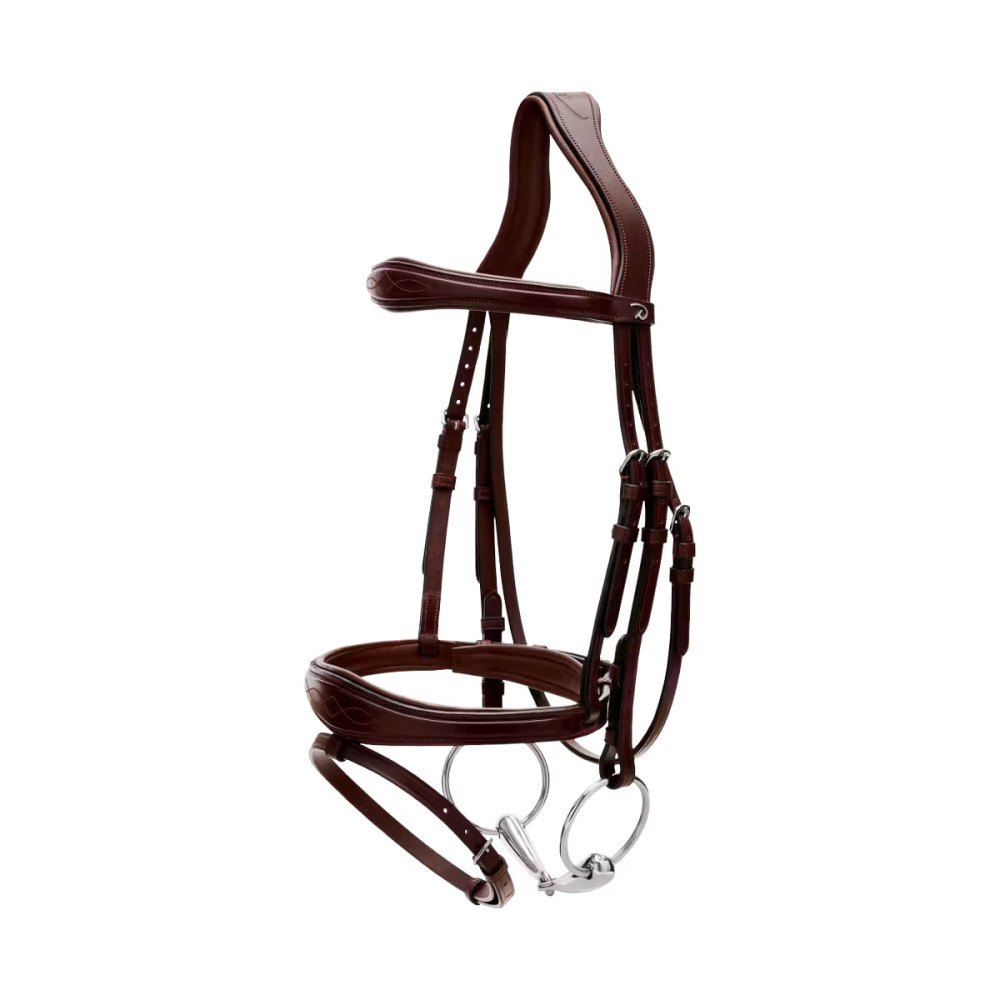 Вуздечка з колекції New English Collection має анатомічну форму для максимального комфорту коня та зниження тиску, а S-подібний потиличний ремінь зменшує навантаження на вуха. Розширені капсуль і налобник надають вуздечці витончений, преміальний зовнішній вигляд.Конструкція розроблена з урахуванням природної форми голови коня, що знижує тиск на лицьові нерви, потилицю та щелепу, забезпечуючи стабільну та зручну посадку.Вуздечка виконана з високоякісної європейської коров'ячої шкіри рослинного дублення та відрізняється довговічністю та розкішним оздобленням.Модель підходить для змагань та тренувань, має строчку у колір шкіри та фурнітуру з нержавіючої сталі.