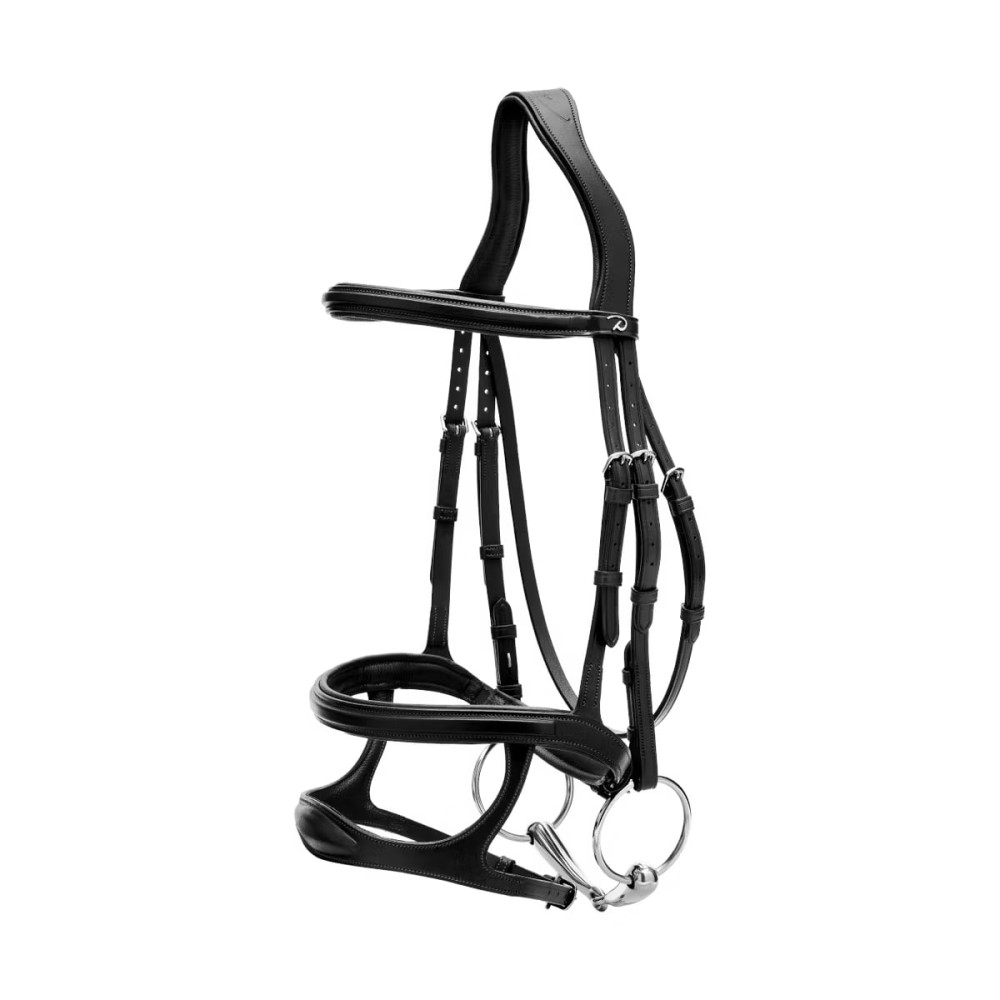 Вуздечка з подвійним капсулем поєднує максимальний контроль та вишуканий стиль, забезпечуючи стабільність та точну комунікацію між вершником та конем.Конструкція з подвійним капсулем сприяє кращій фіксації та запобігає розкриттю рота, що особливо корисно для коней, яким потрібне додаткове керівництво під час тренувань та змагань.Вуздечка виконана з преміальної шкіри, що відрізняється міцністю та розкішною текстурою, яка згодом стає ще м'якшою.Фурнітура з нержавіючої сталі гарантує надійність, стійкість до корозії та акуратний зовнішній вигляд.Ергономічний потиличний ремінь з м'якою підкладкою рівномірно розподіляє тиск і підвищує комфорт навіть за тривалої роботи.Повністю регульована посадка дозволяє ідеально адаптувати вуздечку під форму голови коня, роблячи її універсальним вибором для різних дисциплін - від виїздки до конкуру.Ця вуздечка гармонійно поєднує функціональність, комфорт та елегантність, підкреслюючи професійний рівень екіпірування.