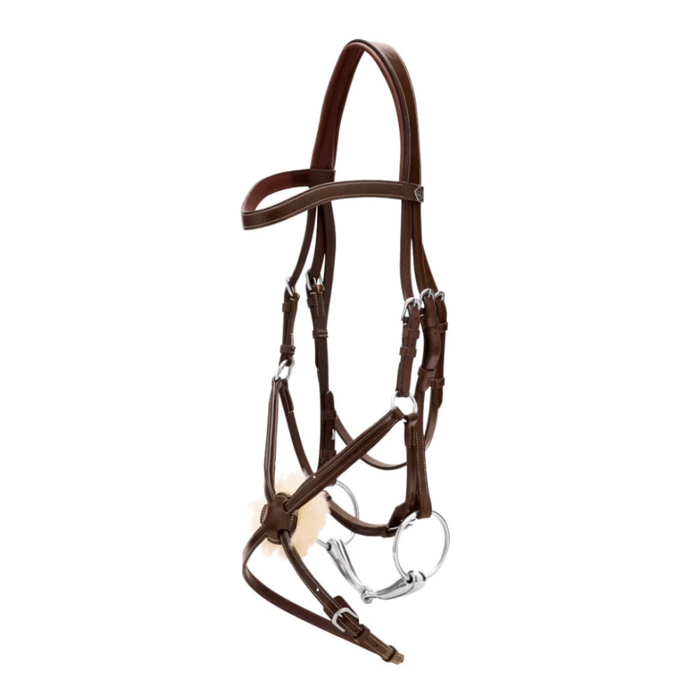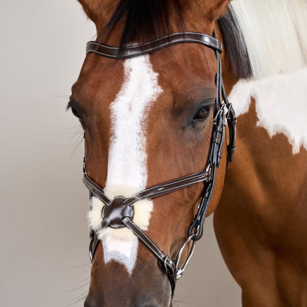Вуздечка з мексиканським капсюлем Working By Dyon створена для посиленого контролю та комфортної роботи коня.Капсюль рівномірно розподіляє тиск, допомагає утримувати рота закритим і одночасно покращує приплив повітря, що особливо важливо при інтенсивних тренуваннях і на змаганнях. М'яка підкладка на капсулі та налобнику запобігає натирання та забезпечує комфорт навіть при тривалому використанні.Вуздечка виготовлена із міцної буйволиної шкіри, розрахованої на щоденну експлуатацію, а фурнітура із нержавіючої сталі гарантує надійність та стійкість до корозії. Регульовані нащічні ремені дозволяють точно підігнати посадку під форму голови коня.Модель ідеально підходить для тренувань, поєднуючи практичність, довговічність та функціональний стиль.