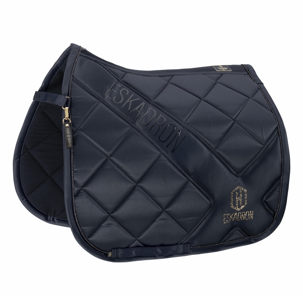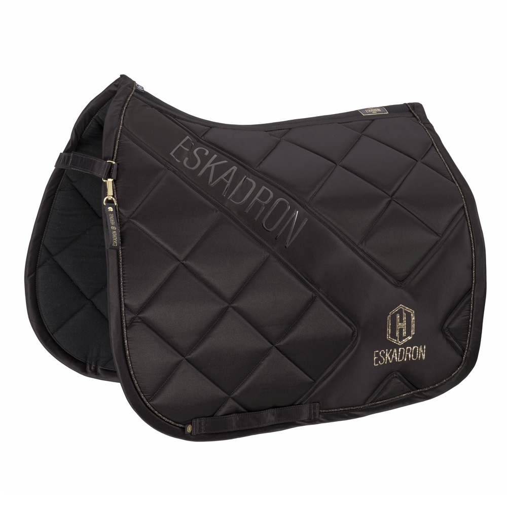 Вальтрап виготовлений з елегантною поверхнею mattgloss та м’якою підкладкою, що забезпечує комфорт для коня.Проста стібка з наповнювачем середньої щільності зберігає форму виробу та сприяє рівномірному розподілу навантаження.Бокові вставки прикрашені кристалічним декором Heritage з обох боків, підкреслюючи преміальний стиль моделі.У зоні сідла передбачені силіконові протиковзкі поверхні для надійної фіксації.Окантовку mattgloss доповнює декоративний люрексовий шнур, а сітчаста вставка вздовж спини забезпечує ефективну циркуляцію повітря.Вальтрап оснащений системою Innostrap та ременем підпруги з можливістю потрійного кріплення.Комплект доповнений фірмовим брелком Eskadron.Матеріал: 100% поліестер.