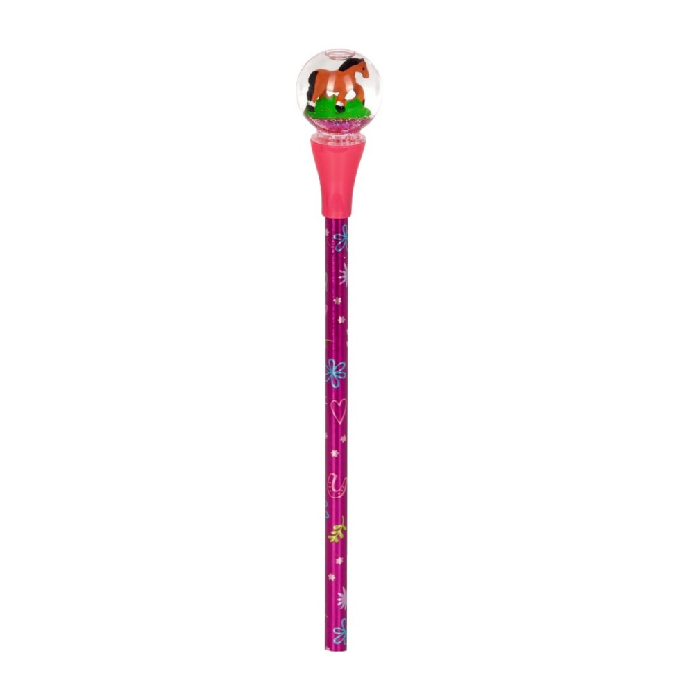 Очень особенный карандаш для любителей лошадей любого возраста.Этот цветной карандаш с неоново-розовым грифелем имеет блестящий шар с маленькой лошадкой, что добавляет дополнительное веселье рисованию и творчеству.Прекрасный маленький подарок, идеально подходит в качестве подарка первокласснику или для любого школьного праздника.Доступен в 2 вариантах дизайна на выбор.Длина 21 см.