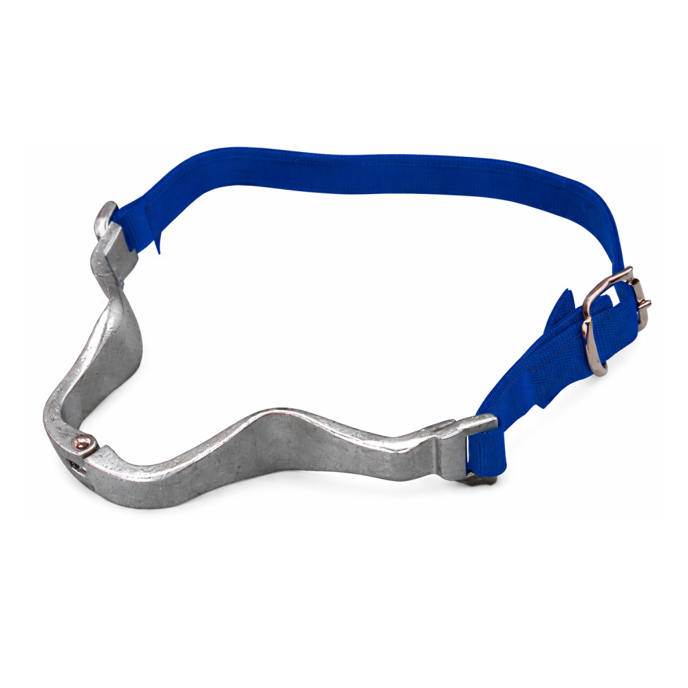 Алюминиевый ошейник против прикуски с прочным нейлоновым ремнем.Он имеет специфическую изогнутую форму, которая препятствует заглатыванию воздуха лошадью, не создавая при этом лишнего дискомфорта во время приема корма или питья воды.Материал: алюминий, нейлон.Регулировка: оснащен надежной пряжкой для подгонки по размеру головы лошади.