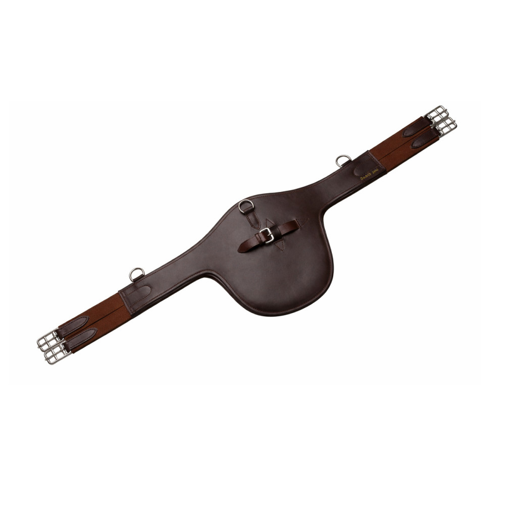 Профессиональная защита и комфорт для прыжковых тренировок.Высококачественная кожаная подпруга с расширенным центром (фартуком), созданная специально для конкура.Она надежно защищает живот лошади от ударов передними копытами или травмирования шипами во время прыжка.Материал: Натуральная кожа, нержавеющая сталь.Особенности: Эластичные резинки с обеих сторон, D-образные кольца, центральный карабин.