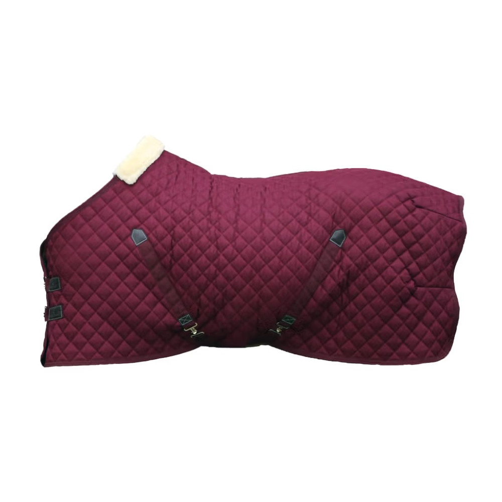 Тёплая и комфортная попона для денника Stable Rug 400g Kentucky, созданная специально для стриженых лошадей и лошадей с чувствительной кожей. Благодаря подкладке из искусственного кроличьего меха она мягко прилегает к телу, предотвращает натирание и обеспечивает максимальный комфорт даже при длительном использовании.Попона обладает отличными согревающими свойствами, оставаясь лёгкой и при этом не сковывает движения. Наполнитель из синтетического волокна плотностью 400 г эффективно удерживает тепло, создавая эффект, схожий с натуральным пухом, но при этом более практичный и простой в уходе. Комбинация материалов обеспечивает высокую воздухопроницаемость, благодаря чему лошадь остаётся в тепле, не перегреваясь.Внешний слой выполнен из прочного полиэстера 600D с повышенной износостойкостью и простёган ромбовидным узором, что делает попону устойчивой к разрывам. Ткань не притягивает стружку и легко очищается, что особенно удобно в условиях конюшни. Анатомическая форма гарантирует отличную посадку и свободу движений, а два прочных передних замка и подпузные ремни обеспечивают надёжную фиксацию.В области холки дополнительно использован искусственный овечий мех для защиты от давления и натирания. Подкладка из искусственного кроличьего меха позволяет попоне легко скользить и возвращаться на место даже после того, как лошадь валялась или ложилась.