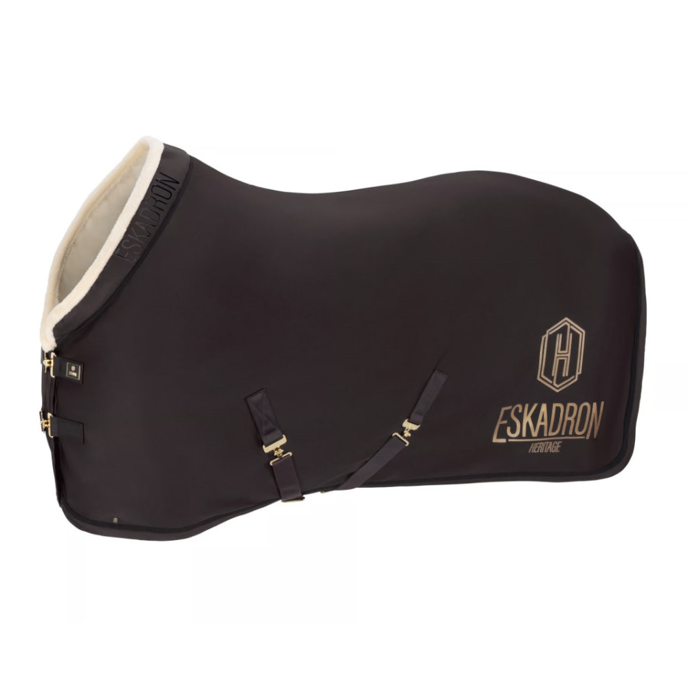 Попона выполнена из инновационного материала с поверхностью aerial-jersey и мягкой флисовой подкладкой внутри, обеспечивающей комфорт и эффективное отведение влаги. Глянцевая окантовка украшена декоративным плетёным шнуром, а мягкий воротник из искусственного меха дополнен фирменной надписью Eskadron с обеих сторон. С одной стороны расположен знак коллекции Heritage в виде эмблемы. Модель оснащена двойной грудной застёжкой с фиксацией на липучке, съёмными перекрёстными ремнями и встроенным хвостовым ремешком для надёжной посадки.Материал: 95% полиэстер, 5% эластан.