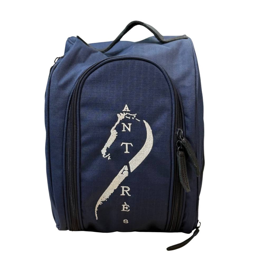 Сумка разработана для транспортировки и надёжной защиты шлема от грязи, влаги и царапин. Вмещает не только шлем, но и аксессуары. Оснащена несколькими функциональными карманами: два боковых на молнии идеально подходят для ключей и небольших личных вещей.Застёжки-молнии декорированы кожаными вставками, придающими дополнительную элегантность. На задней стороне предусмотрено пластиковое окошко для записи имени владельца или номера телефона. Для устойчивости и защиты дна снаружи расположены четыре прочные пластиковые ножки.Внутренняя часть отделана мягким флисом, обеспечивающим амортизацию, а внешняя поверхность выполнена из полностью водонепроницаемой ткани.Изготовлено вручную во Франции с вниманием к каждой детали.