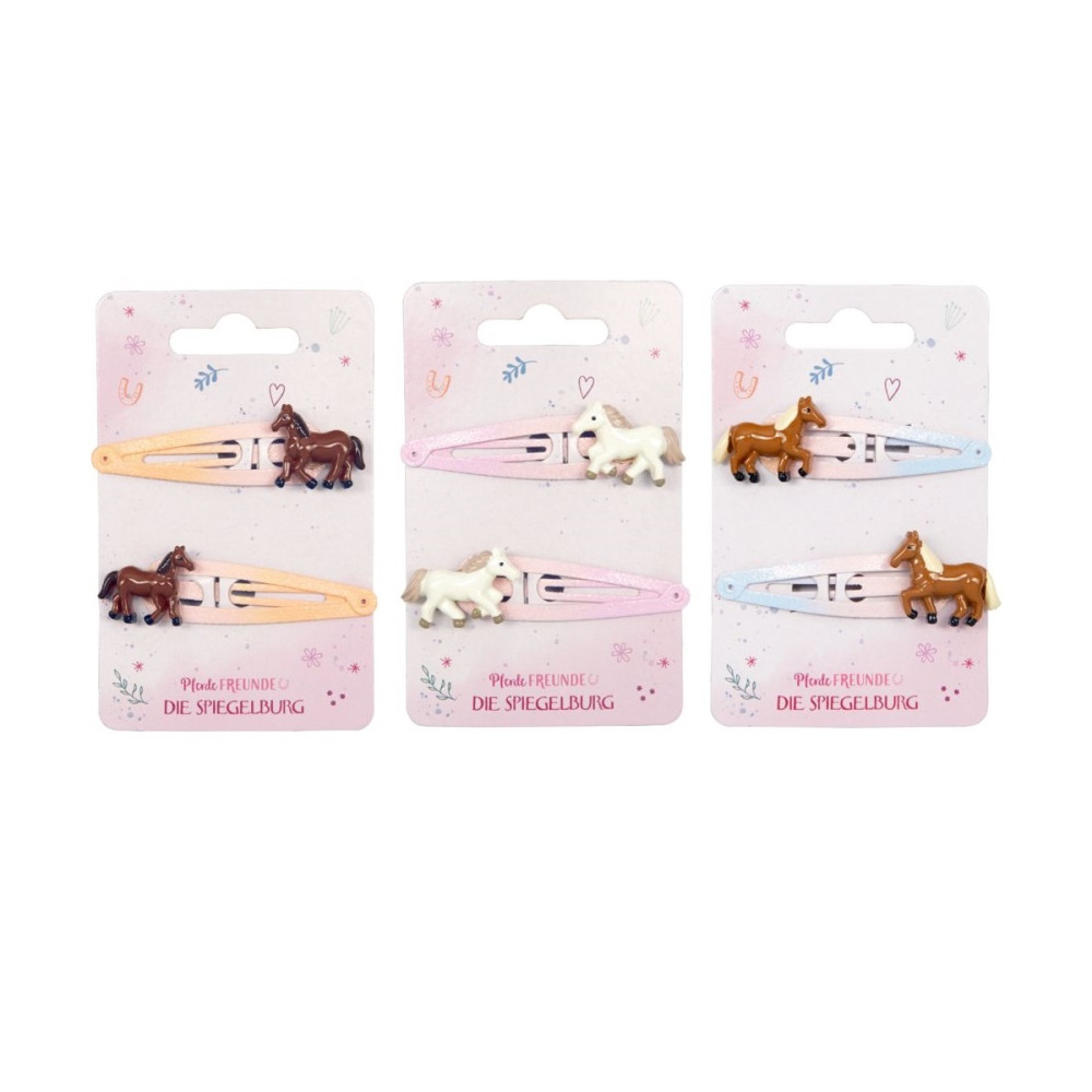Блеск для каждой прически! Пара заколочек для волос из коллекции Друзья Коней от Die Spiegelburg придадут блестящие акценты вашим волосам. С блестящей отделкой, с фигуркой кузнечика на каждой заколочке, размер примерно 6 см, они придадут особый штрих любой прическе и являются блестящей изюминкой для маленьких любителей верховой езды.