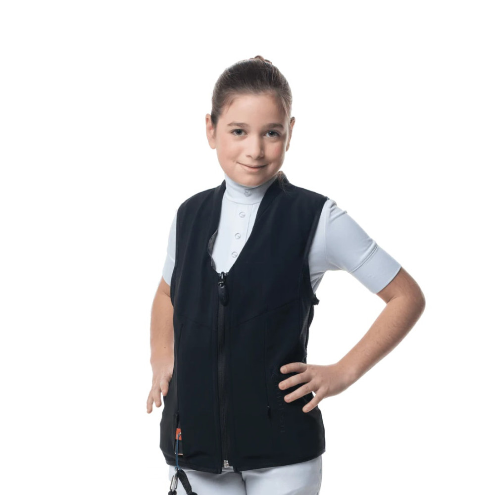 Airbag Freejump - сертифицированный защитный жилет с подушкой безопасности по стандарту NF S72-800-2022, созданный для защиты всадников. Мгновенно надувается за 98 мс, защищая шею, спину, поясницу, крестец, таз и грудную клетку.Детские размеры S и L подходят для детей весом не менее 25 кг и ростом не менее 130 см.Жилет рассчитан на использование баллона 50 сс (для размеров XXS–L). Для правильной работы подушки обязательно используйте только новые баллоны одного объёма (артикул F02203).Жилет лёгкий, гибкий и не мешает движению. Перфорированные вставки обеспечивают вентиляцию, приталенный крой и эластичные материалы дают комфорт даже при длительной езде. Можно носить поверх тонкой одежды (футболки, свитшота или легкого свитера) или поверх куртки.Ношение под верхней одеждой возможно только с совместимой курткой, соответствующей стандарту NF S72-800-2022 и прошедшей официальный тест совместимости лабораторией CRITT.Сделано во Франции.