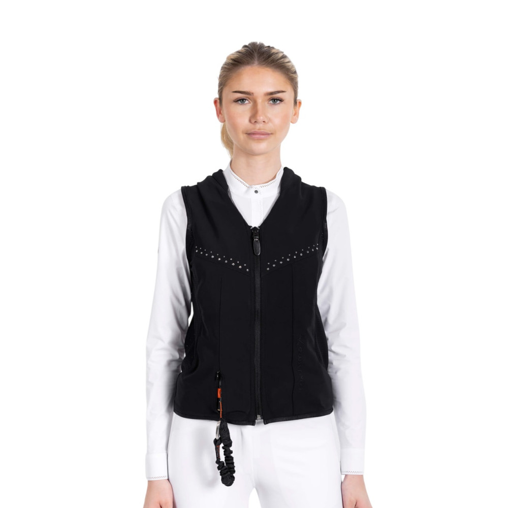 Жилет AIRBAG FREEJUMP является первым жилетом с подушкой безопасности для верховой езды, который был одобрен стандартом NF S72-800-2022 . Защищает шейный отдел, спину, поясницу, крестцовый отдел, таз, грудную клетку.Оптимальная защита шеи: шейный бандаж стабилизирует позвоночник и жизненно важные зоны. Защита шеи адаптирована к каждому размеру.Защита груди, адаптируемая к каждому размеру (24% окружности груди и 100% длины талии-плеч)Защита спины также адаптирована к каждому размеру (20% обхвата груди и 120% длины талии-плеч)Жилет рассчитан на рост :XXS - 145-160 см.XS - 150-165 см.S - 155-170 см.L - 165-180 см.Сделано во Франции.